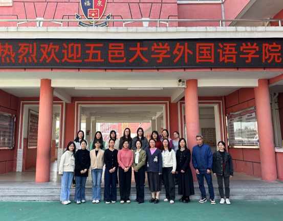 为进一步提升教育硕士研究生的教学实践能力,丰富课堂教学经验,2025年3月20日上午,五邑大学外国语学院学科教学(英语)专业的师生们走进江门市福泉奥林匹克学校,开启了一场沉浸式的英语课堂教学观摩之旅。本次活动由学院党委书记吴小霞、副院长陈彦华带队,4名研究生全程参与。