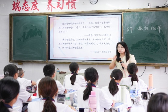 六月榴红,教研热情正浓。为进一步提升学校办学质量,探索高效课堂模式,促进校际沟通交流,6月4日,紫茶中学优秀语文教师田丹应邀来到我校开展送教活动,为七年级学生带来了一堂精彩的《写作:抓住细节》示范课,也为我校语文教师呈现了一场教学智慧的盛宴。