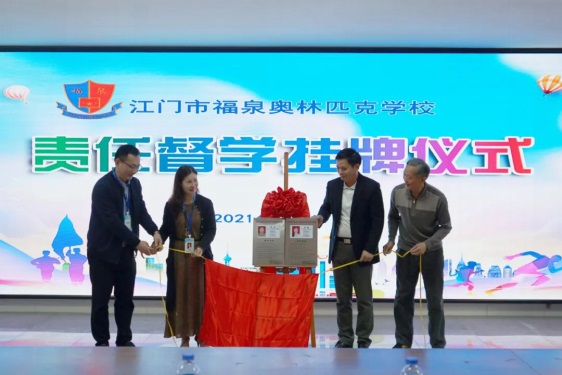 为全面贯彻国家《教育督导条例》,规范学校办学行为,提升学校管理水平,3月11日上午,在江门市人民政府教育督导室阮昌国主任带领下,江门市福泉奥林匹克学校两位新任督学到岗上任,并举行了责任督学挂牌仪式。罗金宏校长和学校行政领导、教师代表及家委代表出席了揭牌仪式。仪式由梁协和副书记主持。