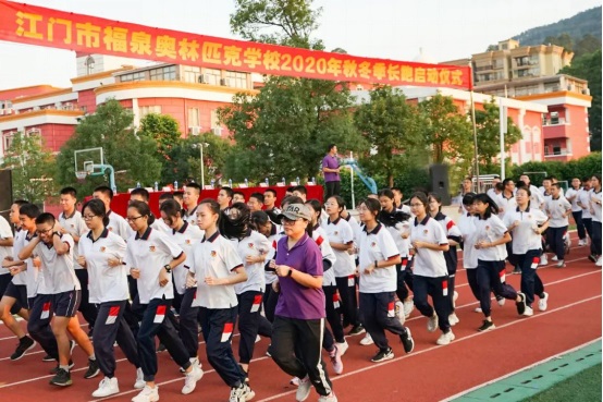 罗金宏校长宣布:“福泉奥校阳光体育秋冬季长跑正式开始!” 拉开了2020年秋冬季长跑活动的序幕。