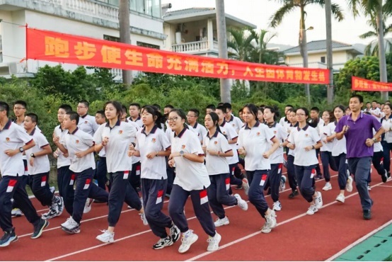 伴随着激昂的乐曲,由罗金宏校长、钟明洋副校长、何梓林主任和梁安工会主席打头阵,率先领跑在队伍前面,各班方阵紧随其后,拉开了秋冬季长跑活动的序幕。