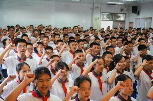 为庆祝中国共产党建党100周年,引导学生深刻感悟责任与担当,传承红色基因,坚定理想信念,5月30日下午,我校七年级在四楼多功能厅隆重举行“童心永向党,追梦新时代”少先队离队仪式,七年级的同学们告别少先队组织生活,迈开坚定的步伐,正式向共青团组织靠拢。
