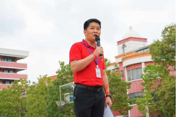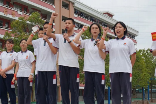 教师代表曾涛中和梁邱文为同学们加油打气,要强势出击,让信念与行动同步,让快乐与成功齐飞。