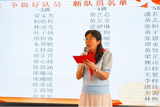 大队辅导员黄翠玲宣布成立2021级少先队中队的决定。