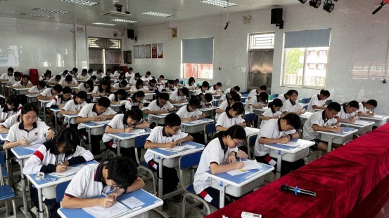 本次比赛要求:书写卷面整洁美观,字母、单词、句子书写规范、标点符号、字间距等提出了具体的要求。比赛中,所有学生神情专注,他们用心执笔,字母横平竖直,圆润饱满,单词间距匀称,句子书写规范、美观。