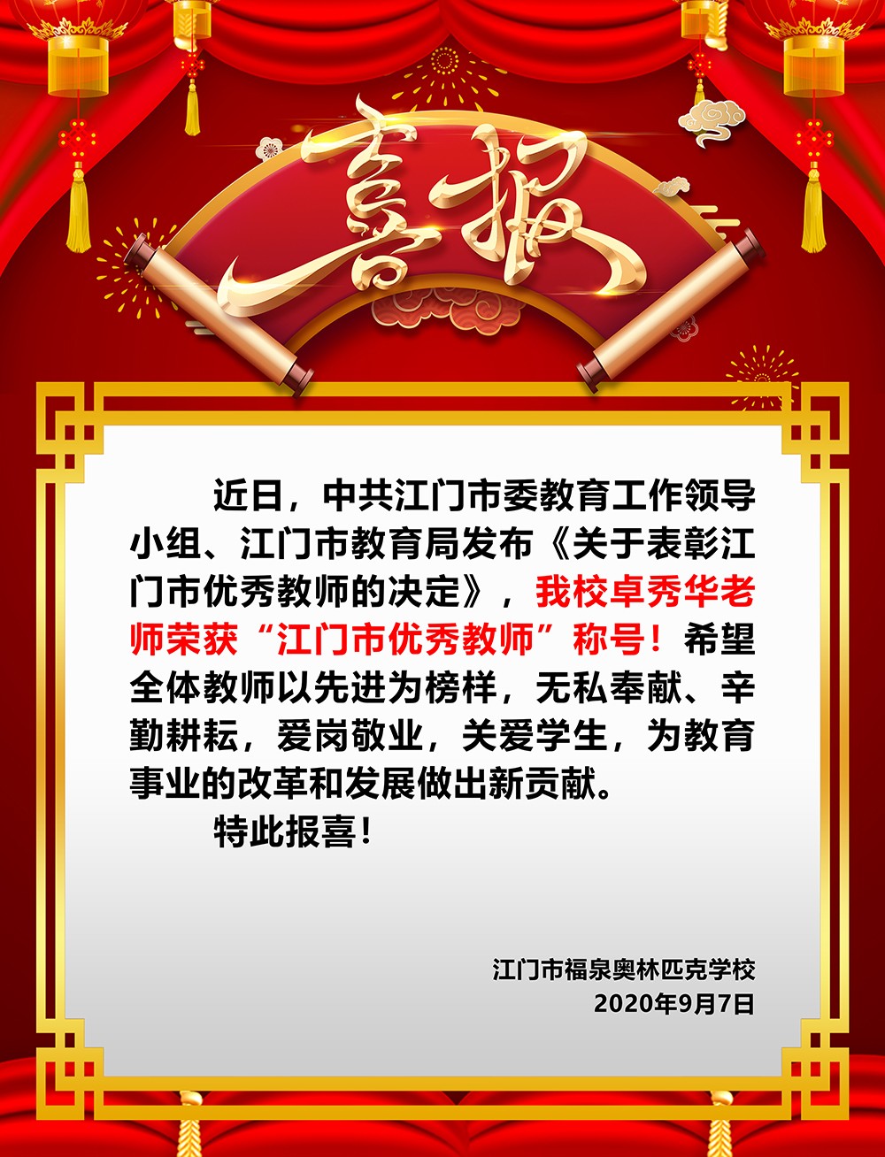 20200907江门市优秀教师喜报